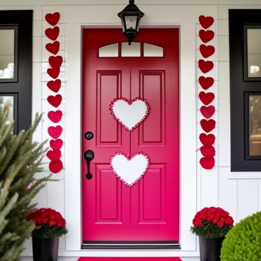 Craft a love letters banner with cardboard or felt, forming the words "LOVE" or "XOXO." Attach it to your door, creating a whimsical and romantic entry that captures the essence of the season.